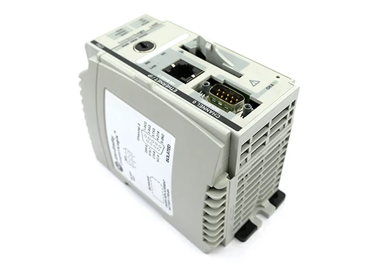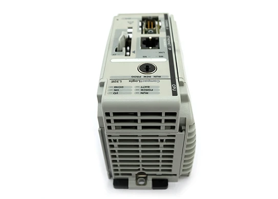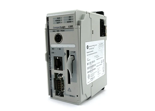 The Allen-Bradley 1769-L32E Compact Logix controller comes in a uniquely compact, cost-effective package. It integrates one (1) EtherNet and one (1) serial communication port. It can be connected to the device via a 1747-CP3 or 1756-CP3 cable or an Ethernet cable. It has 750 KB of built-in user memory and can be expanded with a CompactFlash card with part number 1784-CF128.