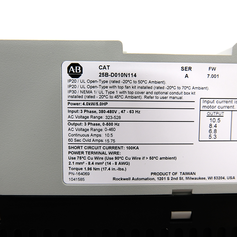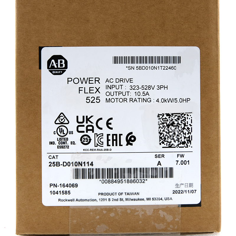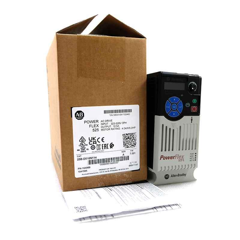 The 25B-D010N114 is a drive product from Allen-Bradley, which belongs to the PowerFlex 525 series, which is mainly used for motor speed regulation and energy-saving applications in industrial automation control. Here is an overview of the main features and functions of the product: