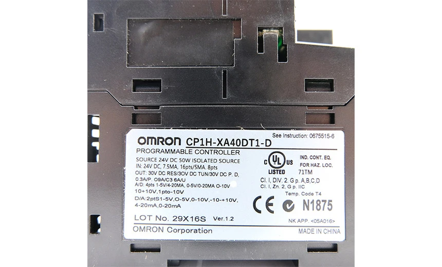 The Omron CP1H-XA40DT1-D is a powerful all-in-one PLC that combines discrete, analog, and motion control in a compact form factor suitable for OEM machines and small to medium automation systems. It offers 24 VDC power supply, 24 DC digital inputs (PNP/NPN), and 16 PNP transistor outputs, making it ideal for applications that require high-speed transistor outputs, such as packaging machines, indexing tables, feeders, and assembly equipment.