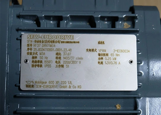 Reduction ratio: determined by the FA57BR37DRN71MS4 reducer, used to reduce the output speed of the motor and increase the torque.