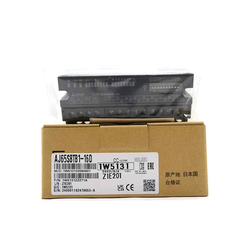 The AJ65SBTB1-16D is a compact CC‑Link remote input unit designed to bring 16 field digital signals (from sensors, switches, and contacts) into a MELSEC PLC system via the CC‑Link network, reducing home‑run wiring and simplifying modular machine layouts. Each of the 16 inputs is rated for 24V DC (19.2–26.4V operating range) with about 7mA input current and supports both sink and source wiring thanks to its positive/negative common shared (sink/source shared) configuration, grouped as 16 points per common using a 1‑wire terminal block.