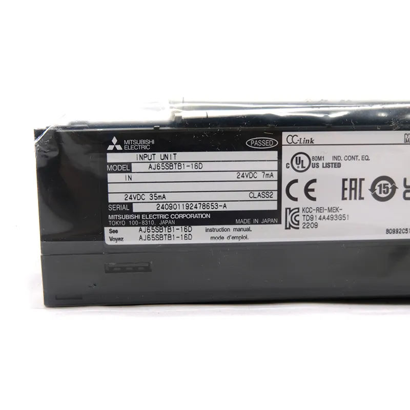 The module offers fast response times of 1.5ms or less for both OFF→ON and ON→OFF at 24V, making it suitable for general limit switches, proximity sensors, and operator pushbuttons in typical PLC scanning applications. Photocoupler isolation between field inputs and internal circuitry improves noise immunity and protects the CC‑Link network and master station. The unit itself is powered by 24V DC (20.4–26.4V, ≤35mA with all points ON), ensuring low power consumption in large distributed systems.