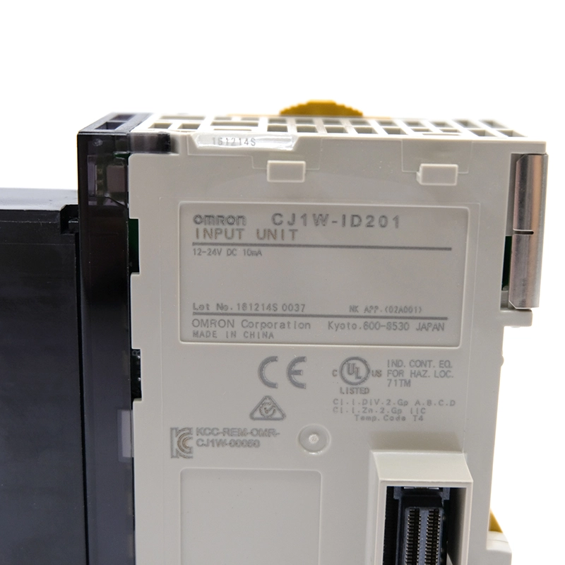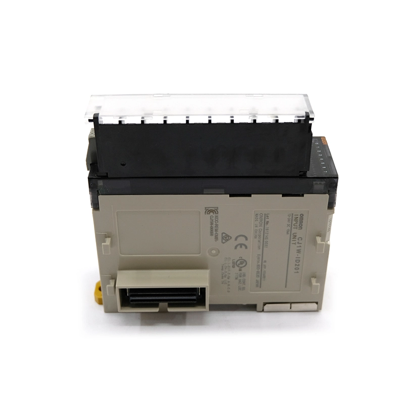 The Omron CJ1W-ID201 is a compact DC input unit for Sysmac CJ-series PLCs, providing 8 digital inputs with a rated voltage of 12–24 VDC and a wide operating range of 10.2–26.4 VDC. It supports both PNP and NPN input types, allowing flexible connection of proximity sensors, limit switches, push buttons, and other 24 VDC field devices. With a typical input current of 10 mA at 24 VDC and defined ON/OFF thresholds (ON at ≥ 8.8 V/3 mA, OFF at ≤ 3 V/1 mA), the module ensures stable and noise‑resistant signal detection in industrial environments.